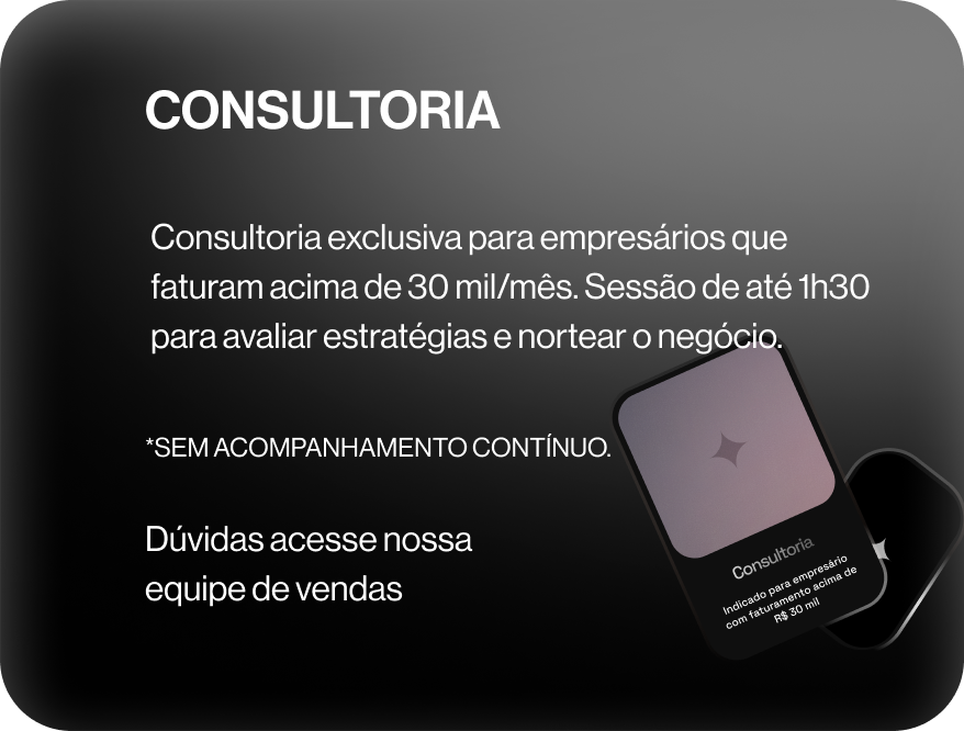 Nossa mentoria completa, Psicologia do Preço Advance, é restrita a empresários que faturam acima de 150 mil/mês.