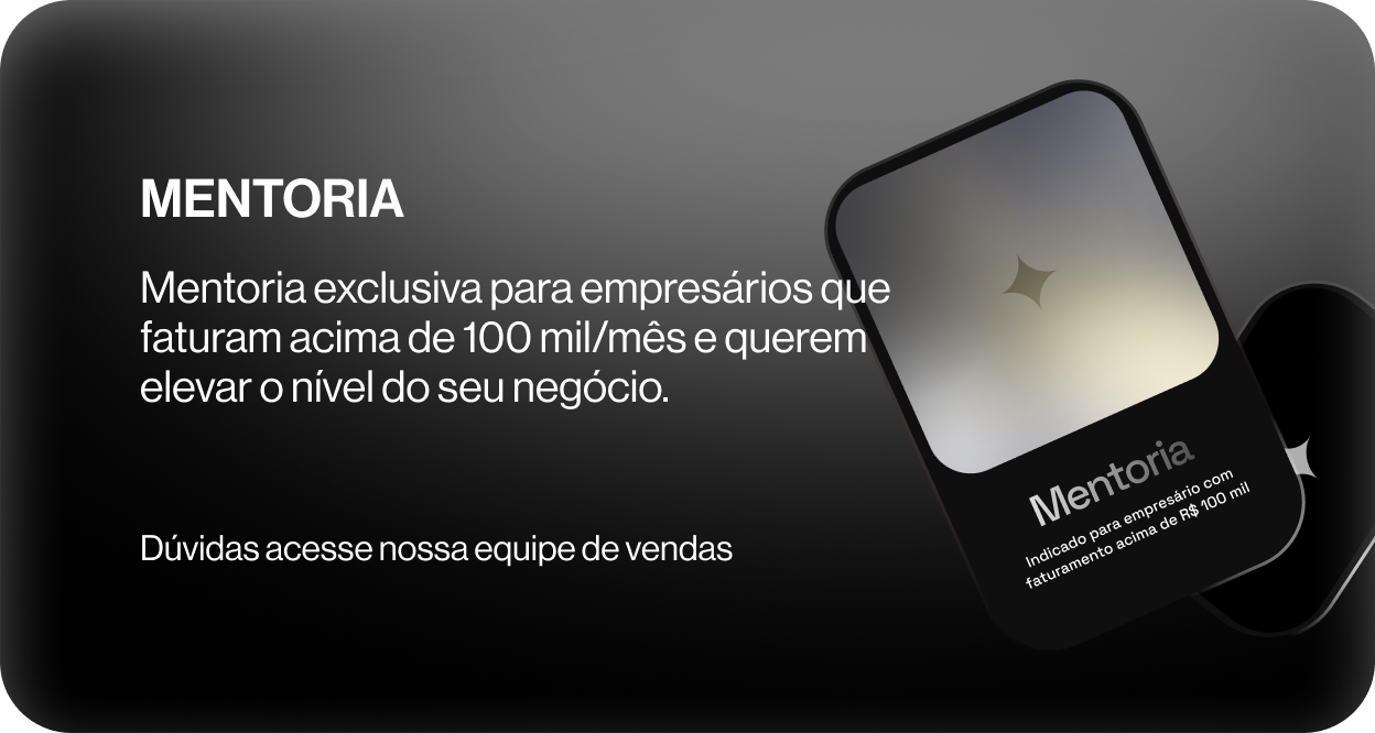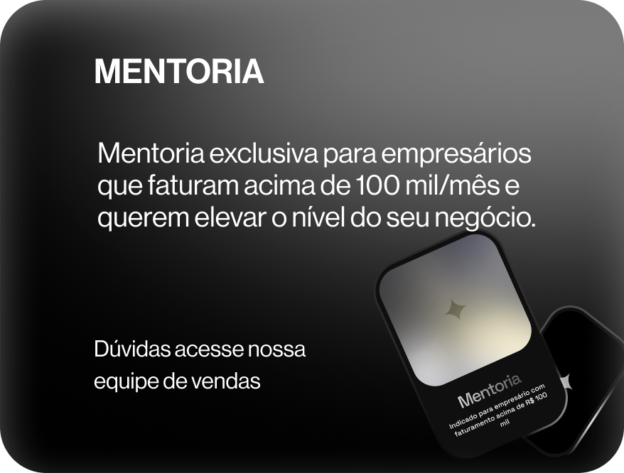 Existem 3 níveis de mentoria, de 1, 2 e 3 meses de acompanhamento, dependendo do nível do negócio.