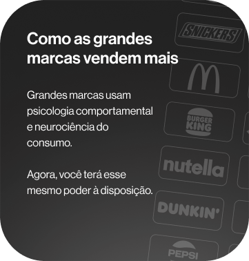 Após a mentoria, você terá em mãos as ferramentas que tornam grandes marcas líderes, aplicando ciência no comportamento.